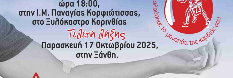 Εθελοντές Αιμοδότες Ελλάδας – 23η Πανελλήνια Λαμπαδηδρομία. Υποδοχή της φλόγας στο Δημοτικό Σχολείο Κενταύρου την Τετάρτη 15 Οκτωβρίου 2025 , στις 11:00 πμ.