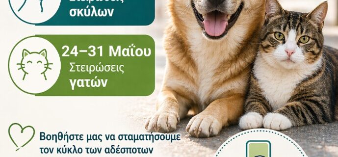 Συμμετοχή του Δήμου Μύκης σε δράση μαζικών στειρώσεων αδέσποτων ζώων συντροφιάς